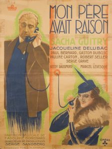 [Sacha GUITRY]. 2 AFFICHES anonymes pour le film Mon père avait raison, 1936. Affiches Gaillard, Paris-Amiens. 160 x 120 cm (entoilée).