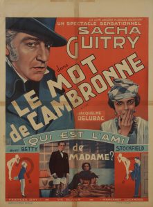 [Sacha GUITRY]. AFFICHE anonyme pour le film Le Mot de Cambronne, 1936. Graphilux, Bruxelles. 86 x 61 cm (plis renforcés).