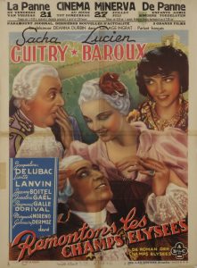 [Sacha GUITRY]. AFFICHE pour le film Remontons les Champs-Élysées, 1938. Affiche belge en couleurs, Imp. L. & H. Verstegen, Bruxelles. 85 x 60 cm (marque de plis).