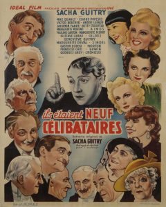 [Sacha GUITRY]. AFFICHE pour le film Ils étaient neuf célibataires, 1939. Affiche belge en couleurs, Imp. L.F. De Vos & C° à Anvers. 85 x 61 cm (traces de pli).