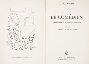 Sacha GUITRY. Le Comédien. Comédie inédite en un prologue et quatre actes, précédée de Lettre à mon père (Éditions de l’Ancre d’Or, 1948). In‑8, broché, sous étui-chemise.