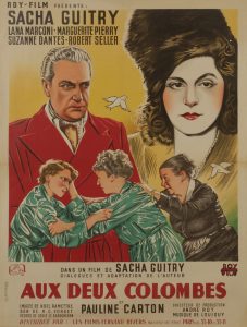 [Sacha GUITRY]. AFFICHE pour le film Aux Deux Colombes, 1949. Impression couleurs de J.E. Goossens, Lille-Paris. 84 x 59 cm.