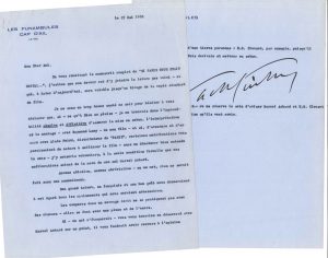Sacha GUITRY. L.S., Cap d’Ail 27 mai 1955, à un ami [Clément DUHOUR, de la société de production cinématographique CLM ?] ; 1 page et demie in-4 à en-tête Les Funambules.