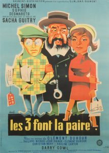 Clément HUREL (1927-208). Affiche pour le film Les 3 font la paire, 1957. Impr. Richier-Laugier, Paris. 160 x 120 cm (entoilée).