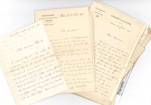─ Maurice CORTIER, capitaine et explorateur (6, une incomplète) : envois d’observations astronomiques en A.O.F., de valeurs de latitudes et longitudes de Tombouctou et Niamey, etc.) ;