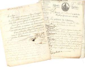 Pour remettre au citoyen Espivent, membre du Conseil d’agriculture, arts et commerces de la Loire-Inférieure, un modèle de moulin saisi à tort ; pour laisser transporter des caisses venant de Hambourg et saisies à Dieppe, réclamées par le citoyen Chaumontel, professeur à l’École vétérinaire d’Alfort ; recommandant, comme mesure de « saine politique », d’exempter de droits les biens personnels de Mr. Wilcox, qui vient d’établir à Bordeaux une manufacture de chapeaux…