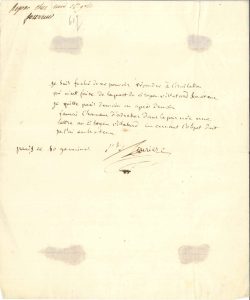 « Je suis faché de ne pouvoir répondre à l’invitation qui m’est faite de la part du citoyen Villetard sénateur. Je quitte Paris demain ou après demain »…