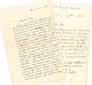 Louis PASTEUR. 3 L.A.S., Paris novembre-décembre 1866, à Jules VERCEL ; 1 page in-12, 1 page et demie in-8 et 1 page in-8 à en-tête École Normale Supérieure.