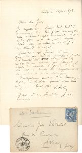 Louis PASTEUR. L.A.S., Paris 11 février 1878, à Jules VERCEL à Arbois ; 1 page in-8, enveloppe.