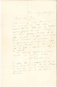 Louis PASTEUR. L.A.S., Paris 17 juillet 1879, à Jules VERCEL à Arbois ; 1 page in-8, enveloppe.