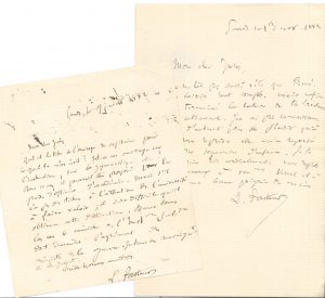 Louis PASTEUR. 2 L.A.S., Paris juillet-novembre 1882, à Jules VERCEL à Arbois ; 1 page in-12, et 1 page in-8 avec enveloppe.