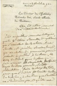 Ambroise SICARD (1742-1822) prêtre, instituteur des sourds-muets. L.A.S., Paris 3 floréal IX (23 avril 1801), au citoyen Gabriel VILLAR, membre de l’Institut national ; 3 pages in-8, en-tête Le Directeur de l’Institution Nationale des...