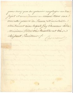 Il n’oublie pas sa recommandation en faveur de M. HENIN : « Je suis instruit de tout ce qu’il a fait pour se procurer des connoissances politiques et je le connois personnellement assés pour avoir jugé de tout ce qu’il vaut par lui-même. Je profiterai avec plaisir des occasions de le placer avantageusement pour sa fortune et utilement pour le service du Roy »…