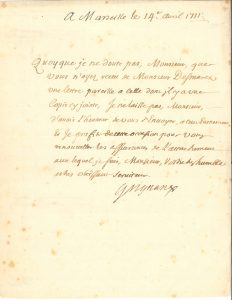 François Adhémar de Monteil, Marquis de GRIGNAN (1632-1714) Lieutenant Général en Provence ; gendre de la Marquise de Sévigné. L.S., Marseille 14 avril 1711 ; ¾ page in-4.