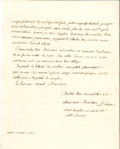 Il ajoute qu’il joint à sa lettre « une petite plaisanterie que je me suis amusé à faire, et qui contient quelques verités utiles mises à la portée du peuple » [probablement sa Lettre des laboureuses de la paroisse de Noisy, près Versailles, qui sera imprimée en 1777]…