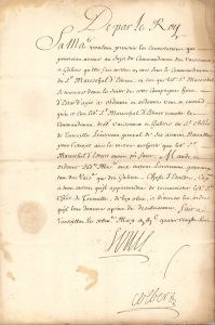 « Sa Maté voulant prevenir les contestations qui pourroient arriver au sujet du commandement des vaisseaux de galeres qu’Elle fait mettre en mer sous le commandement du Sr Mareschal d’Estrees, en cas que ledt sr Mareschal se trouvast dans la suitte de cette campagne hors d’estat d’agir a ordonné et ordonne veut et entend qu’en ce cas ledt sr Mareschal d’Estrees remette le commandement desd. vaisseaux et galeres au sr chlier de Tourville Lieutenant General de ses Armées Navalles pour l’exercer avec la mesme authorité que ledt sr Mareschal d’Estrees auroit pû faire »…