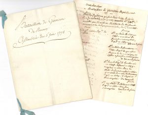 Bataillon de PIÉMONT. 10 lettres ou pièces manuscrites, Montpellier [1777]-1778 ; environ 25 pages formats divers (mouill.).