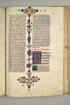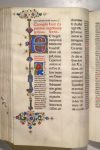 488 initiales peintes en or et en couleurs (vert, bleu et violet), dont 24 grandes avec ornements d’arabesques et de fleurs s’étendant dans les marges.