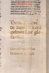 Au premier feuillet du volume : Evangelii Luce Capitul. I ; au verso du dernier feuillet, en lettres d’or sur quatre lignes : Beate Thome de Aquino in eva [n] gelium Luce glosa : finit, et un peu plus bas, sur deux lignes : Venceslaus Crispus Bohemus exscripsit.
