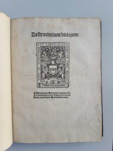Fort populaire en son temps, le Destructiorum viciorum fut composé en 1429 par Alexander Carpenter, écrivain anglais qui vécut au XVe siècle et dont on sait peu de choses aujourd’hui.