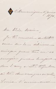 ISABELLE, princesse d'Orléans, duchesse de Guise (1878-1961). L.A.S. : « Isabelle », adressée à sa cousine et belle-sœur, Marie d'Orléans, princesse de Danemark (1865-1909), Villamanrique, 12 janvier 1896, 3 p., in-8, sur papier à en-tête...