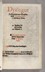 Pierre Doré, théologien né à Orléans au début du seizième siècle et mort en 1569, entra dans l’ordre des Dominicains et devint le confesseur des ducs de Guise. Son ouvrage est la réfutation d’un catéchisme luthérien plain dheresies et blasphemes contre nostre foy de Gaspard Megander, ministre de Berne, paru en allemand en 1536. Ce contrepoison, selon les mots de l’auteur, se présente comme une conversation entre saint Pierre et son disciple Cornélien sur la foi et l’amour de Dieu.