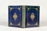 2 parties en un volume in-4, veau bleu foncé, double encadrement de filets dorés, petit fer aux angles, fer à l'éventail dans les angles, grand fleuron dessiné aux petits fers au centre en forme de rosace, dos orné, roulette intérieure, tranches dorées sur marbrure (Reliure vers 1920).