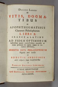 Jolie édition de la Vie des illustres philosophes de Diogène Laërce, poète et biographe du IIIe siècle.