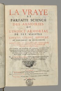 HÉRALDIQUE. — PALLIOT (Pierre). La Vraye et parfaite science des armoiries, ou l'Indice armorial de feu maistre Louvan Geliot, advocat au Parlement de Bourgongne. Dijon, Pierre Palliot, & à Paris, Jean Guignard, Guillaume de Luynes, et Helie...