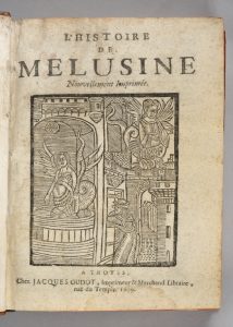 Elle est illustrée d’un grand bois sur le titre représentant Mélusine et 36 bois dans le texte de provenances diverses (calendrier, romans de chevalerie, etc.), dont beaucoup du XVIe siècle.
