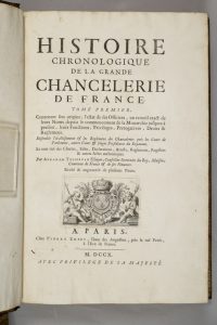 Édition la plus complète de cet ouvrage majeur pour l’histoire de la Chancellerie en France depuis le haut Moyen Âge jusqu’au début du XVIIIe siècle. Celui-ci, d’abord paru en un volume en 1676, est dû à Abraham Tessereau