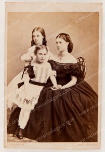 MARIA FEODOROVNA, impératrice de Russie, née princesse Dagmar de Danemark (1847-1928). Portrait photographique de J. Petersen à Copenhague, la représentant posant jeune fille en compagnie de sa soeur la princesse Thyra (future duchesse de...
