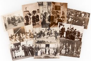 MARIA FEODOROVNA, impératrice de Russie, née princesse Dagmar de Danemark (1847-1928). Rare ensemble de onze photographies argentiques imprimées sur papier carte postale, la représentant posant avec sa famille en vacances à Copenhague au...