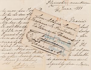 ALEXANDRA, princesse de Grèce, née grande-duchesse Paul de Russie (1870-1891). L.A.S. « Alix », à Marie d'Orléans, princesse de Danemark (1865-1909), Ilinskoïé, 11 juin 1889, 4 p., in-8, conservée avec son enveloppe. Texte en anglais.