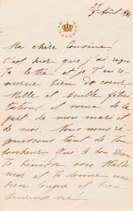 papier à en-tête de sa résidence sous couronne royale. Texte en français.
