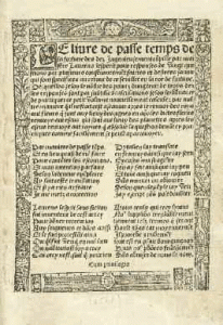 ♦ L'édition est imprimée en caractères gothiques, le titre placé dans un encadrement formé de minces bordures gravées sur bois et portant en pied une petite marque typographique au chiffre de l'éditeur. Elle est illustrée d'un grand bois au verso du titre, représentant la roue de la Fortune, de 10 grands bois contenant les portraits de 20 rois de l'Antiquité, ainsi que de 20 petites bois montrant des reines, lesquels accompagnent les réponses en vers. On trouve aussi 20 tableaux pour les différentes combinaisons des dés et 20 grands écus armoriés.