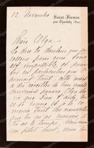 à en-tête de Saint-Firmin, résidence de ses parents le duc et la duchesse de Chartres. Texte en français.
