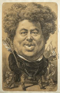 DUMAS (Alexandre). - Étienne CARJAT (1828-1906). Portrait charge d'Alexandre Dumas. Fusain et rehauts de craie blanche. Signé en bas à droite et daté 1859. Dessin: 48,5 x 32 cm ; feuille : 60,5 x 42,5 cm.
