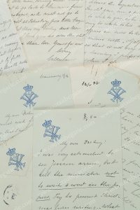 VALDEMAR, prince de Danemark (1858-1939). Lot de 8 L.A.S. : « Valdemar » adressées à sa femme Marie d'Orléans, princesse de Danemark (1865-1909), datant de 1894, 27 p., in-8, sur papier à en-tête de son monogramme sous couronne royale et à...
