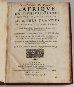 [ATLAS / AFRIQUE]. SANSON d'ABBEVILLE (Nicolas). L'Afrique en plusieurs cartes nouvelles, et exactes, & en divers traictés de geographie, et d'histoire [...]. À Paris, Chez l'Autheur, 1662. In-4°, veau, armoiries au centre des plats, dos à...
