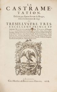 [CASTRAMÉTATION - STEVIN (Symon)]. La Castrametation, descrite par Symon Stevin de Bruges, selon l'ordonnance & usage de [...] Maurice, par la grace Dieu Prince d'Orange, Comte de Nassau [...]. Nouvelle Maniere de fortification par escluses [...]....