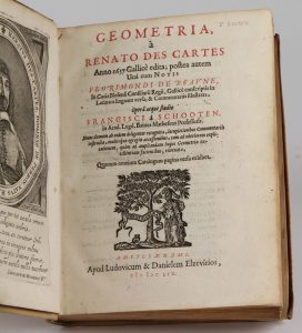 [DESCARTES (René)]. Geometria, à Renato Des Cartes Anno 1637 Gallicè edita ; postea autem unà cum notis Florimondi de beaune [...]. Amstelodami, Apud Ludovicum & Danielem Elzevirios, 1659. In-8° carré, vélin ivoire à petits recouvrements...