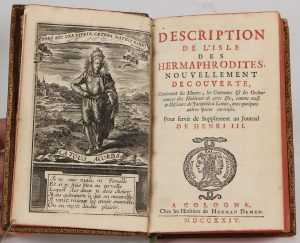 [EMBRY (Arthus thoMas d')]. Description de l'isle des Hermaphrodites, nouvellement decouverte, contenant les moeurs, les coutumes & les ordonnances des habitans de cette isle [...]. Pour servir de supplement au Journal de Henri III. À Cologne, Chez...