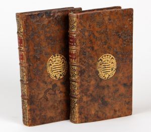 2 volumes in-12, veau, armoiries dorées au centre des plats, dos à nerfs orné (reliure de l'époque).