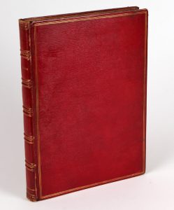 Coiffes légèrement frottées et rousseurs, mais UN DES QUELQUES EX. SUR GRAND PAPIER, celui-ci dans une RELIURE EN MAROQUIN ROUGE.