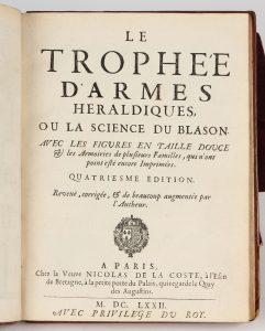 [HÉRALDIQUE - ROYER de PRADES (Jean)]. Le Trophée d'armes heraldiques, ou la Science du blason [...]. À Paris, Chez la Veuve Nicolas de La Coste, 1672. Petit in-4°, veau blond glacé, fleuron aux angles et au centre, dos à nerfs orné...