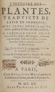 [HISTOIRE NATURELLE]. LINOCIER (Geofroy). L'Histoire des plantes, tradvicte de latin en françois : avec levrs povrtraicts, noms, qualitez & lieux où elles croissent, A laquelle sont adioustées celles des simples aromatiques, animaux à quatre...