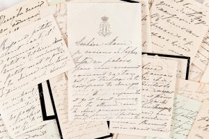 certaines lettres sont bordées de noir et conservées avec leur enveloppe. Texte en français.
