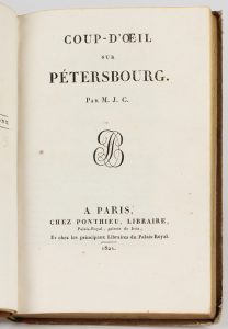 [RUSSIE - CHOPIN (Jean-Marie)]. Coup d’œil sur Pétersbourg. À Paris, Chez Ponthieu, Libraire, 1821. In-8°, demi-basane, dos lisse orné (reliure de l’époque).