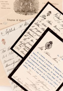 de son monogramme surmonté d'une couronne. Texte en français. On y joint un télégramme.